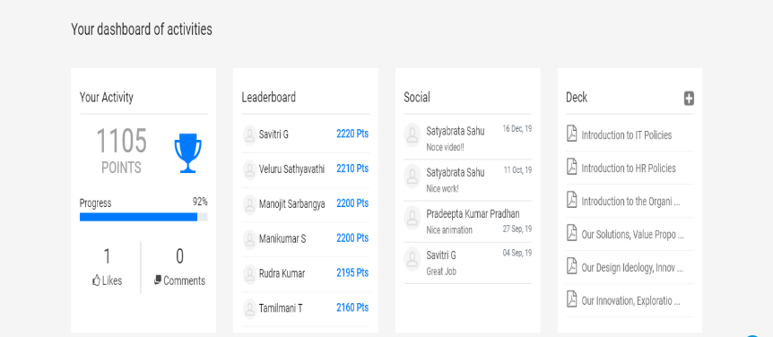 It also features dashboards and leaderboards to impart a sense of social recognition in learners.