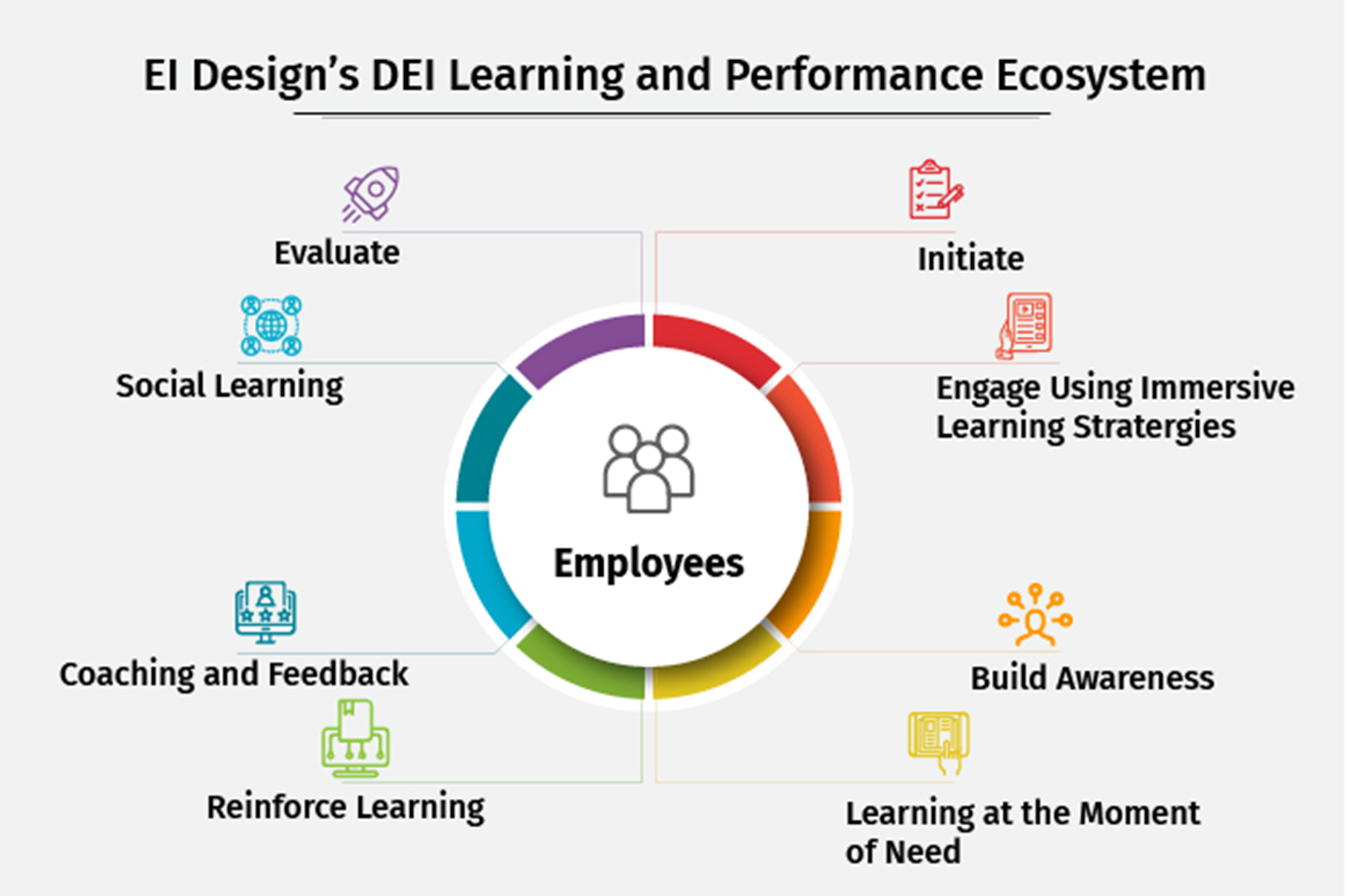 The DEI Learning and Performance Ecosystem, based on the strategies highlighted here, must be part of an iterative process – L&D leaders must continually evaluate quantitative metrics, viz. the impact of these strategies, and then iterate changes to the model based on the assessment of the outcomes accomplished. The DEI Learning and Performance Ecosystem is key to fostering employee engagement. This approach – building awareness, implementing the strategy, assessing the outcomes, and revising the model if required – is critical to shifting mindsets, overcoming biases, and driving behavior change across the organization.