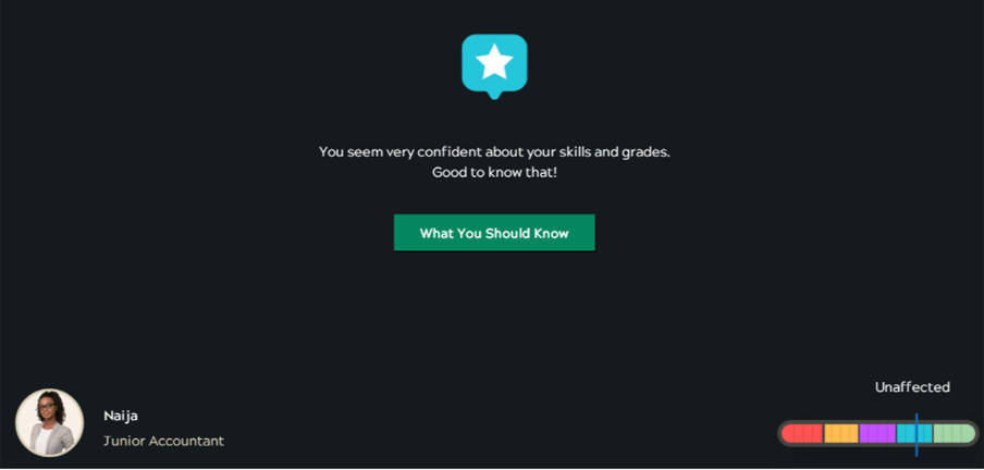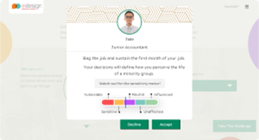 We designed a gamified simulation where learners are put into the shoes of a person trying to bag a job and make decisions. They win the title of ‘DEI champion’ if they get all decisions right.