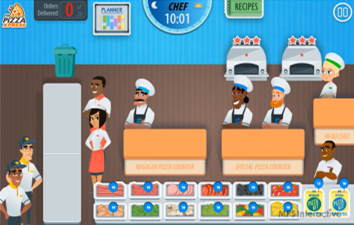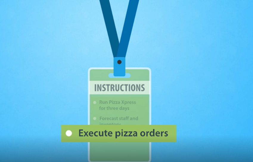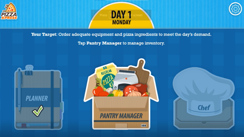 Our game-based learning simulation placed learners in the role of managing a restaurant efficiently for three days. It included:
