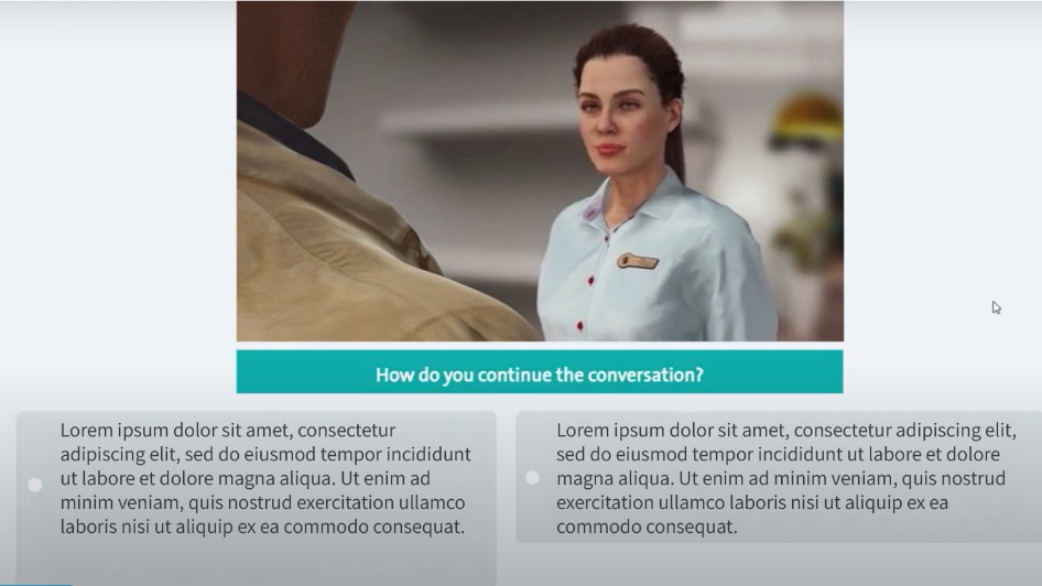 One of our clients sought a dynamic training solution for their customer-facing employees to master handling diverse customer queries and challenging situations effectively. To address this, we developed a web-based, interactive role-playing experience featuring AI avatars. This innovative approach incorporated: