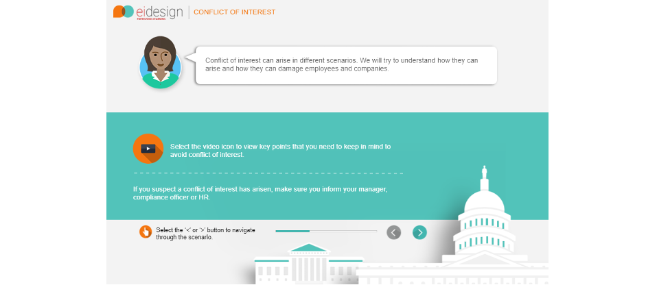 Conventional narrative based training typically walks learners through content – such as compliance standards, policies and procedures, and safety regulations – with a view to make learners aware of what’s right and what’s not.